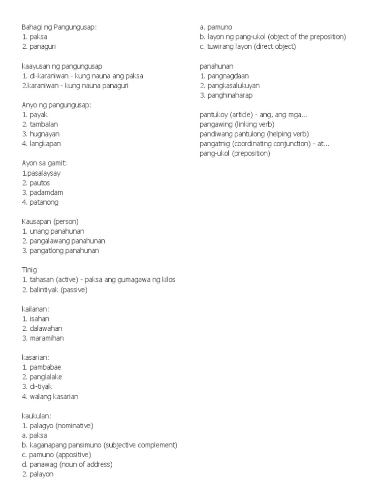 Batayang Pangungusap At Mga Bahagi Nito Pdf