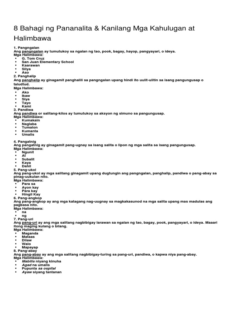 8 Parts of Speech Walong bahagi ng pananalitaDynz Maestro Vlog8partsofspeechverbnounpronoun adverbadjectiveinterjectionconjunctionpreposition. Walong Bahagi Ng Pananalita Pdf Download. 37 Full PDFs related to this paper.